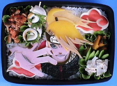 Le truc des Japonais, c est de manger bon, mais aussi joli. Et puis, c est aussi un moyen de montrer ce dont on est capable de faire, aux colleges par exemple, mais il vaut mieux eviter de faire des personnages de jeux video ou de manga, c est mal vu d etre un otaku la bas, malheureusement.